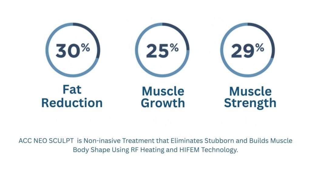 ACC NeoSculpt is the only non-invasive technology that simultaneously uses radiofrequency and HIFEM+ energies to eliminate fat and build muscle.